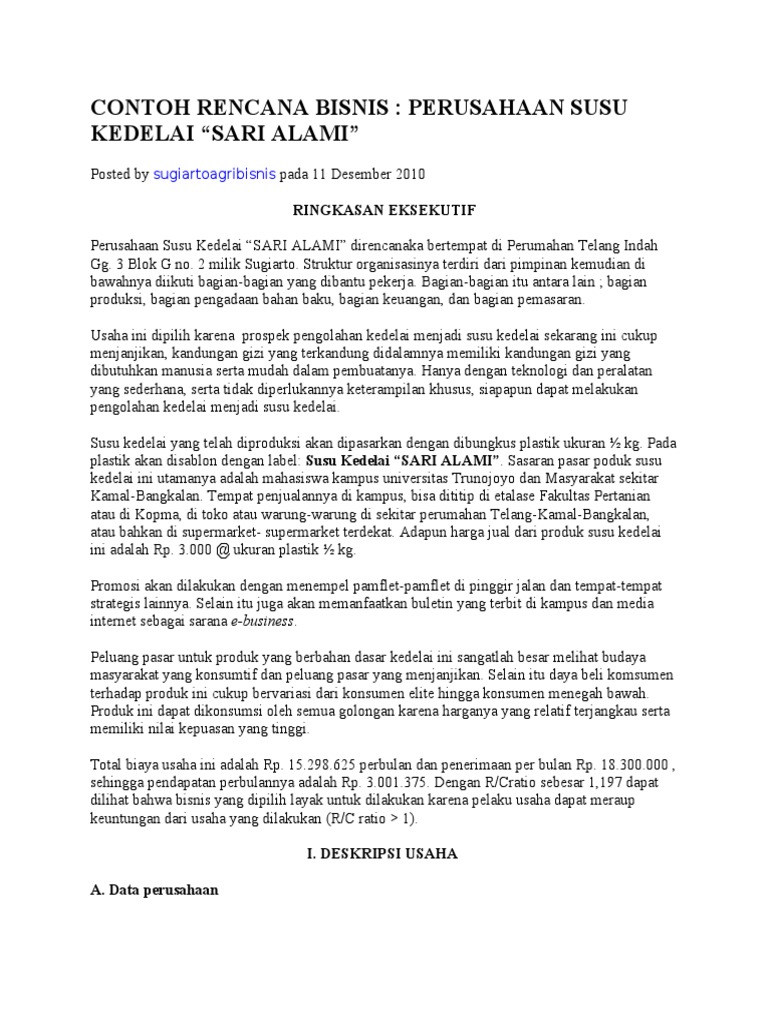 Contoh Rencana Bisnis Sederhana by maqomal muslimat