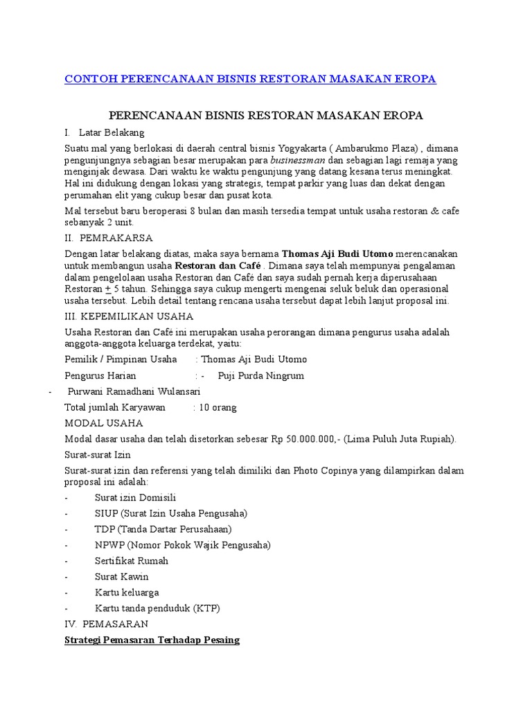 Contoh Perencanaan Bisnis Restoran Masakan Eropa